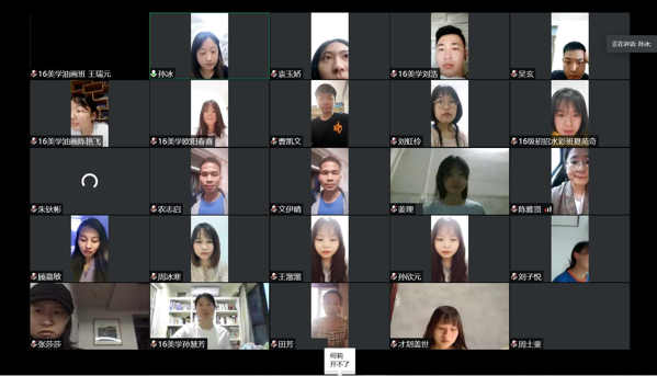 2020年5月21日下午七点,中午字幕在线播放第一页组织2016级全体顶岗实习学生召开线上总结大会”。会议由公共美术教研室主任孙冰老师主持,蔡惠萌副院长,谷炽辉、曾素艳、农志启、张莎莎、齐泽湘、唐浩榕老师出席了会议,2016级全体顶岗实习学生共170人参加了会议。