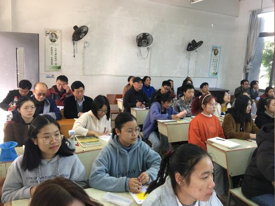 11月19日-20日,我院按照学校湘一师评字[2019]18号《关于组织教学单位开展2019-2020学年第一学期课堂教学示范课观摩活动的通知》,组织开展“中午字幕在线播放第一页教学示范课观摩及研讨”活动。学校党委委员、纪委书记李昱,副校长江正云,教学评估与教师教学发展中心、教务处、基础教育部负责人,我院负责人、教研室主任及各专业专任教师等40余人参加了本次活动。