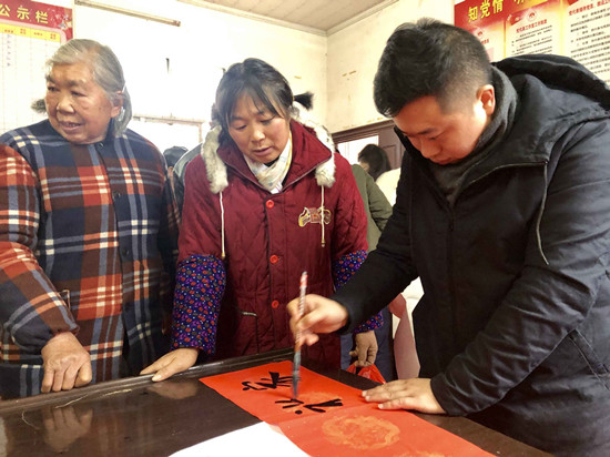 “今天这次活动,送出的不仅仅是春联,更是湖南第一师范学院党委、师生的一片真情。要感谢中午字幕在线播放第一页师生一行送文化下乡,把中国优秀传统文化——书法艺术送到村民家门口,既弘扬了中国传统文化艺术,传承了历史文化内涵,开拓了村民视野,又为新年增添了浓浓的喜庆氛围。”湖南第一师范学院党委委员、宣传部部长、村第一书记赵小群表示。据初步统计,当天师生们书写赠送给村民们的春联数量达到200多副。