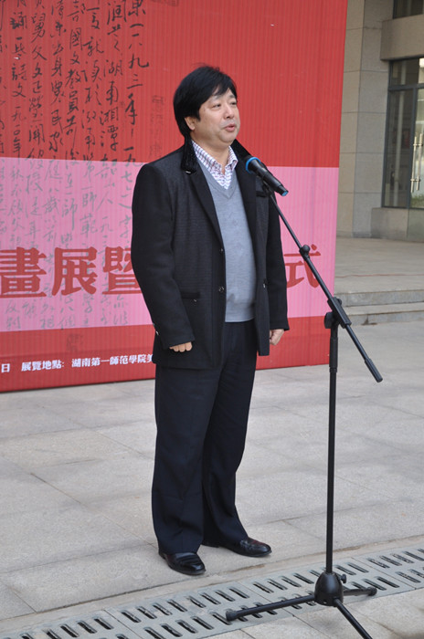 周湘发表了重要讲话。周湘指出,在一代伟人毛泽东主席的母校建校110周年纪念的日子里,王德水先生成功地举办精品书画展,意义重大。周湘对王先生的艺术造诣和我校升本以来所取得的巨大成绩给予了高度评价和充分肯定,并希望王先生与一师的合作与交流得到全面提升,切实为我校的人才培养做出应有贡献。