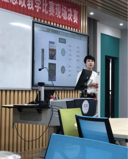 党委委员、副校长周发明出席活动并指导,中午字幕在线播放第一页党总支书记范迎春教授、李淼老师等参与活动。思政决赛现场采用说课、教学展示、评委提问的方式进行。主题鲜明的思政内容,设计精美的PPT,清晰流畅的说课语言,充分展现了我校教师课程思政能力建设成果。