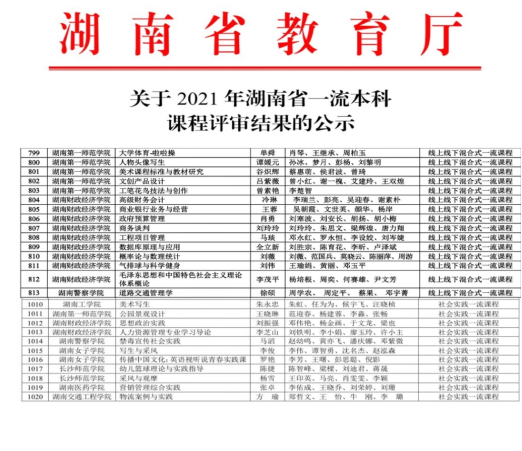 热烈祝贺我院2021年在省级一流本科课程建设中获得佳绩,5门课程获得湖南省一流本科课程立项。