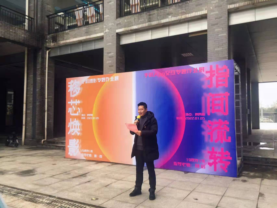 开幕式由视觉传达与产品设计教研室主任谢一槐老师主持,他介绍到:“本次两个课程都有一个显著的特点,就是以手机这一数字世界重要的接入端口为创作平台,探索视觉传达设计在数字文化时代,如何在新的硬件、新的技术、新的平台、新的领域中发挥作用。