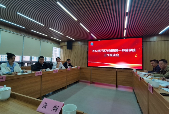 双方表示要充分发挥各自优势,期待今后从四个方面进行深度合作:一是深化拓展一师与天心区在人才培养方面的合作;二是促进一师学科专业群与天心区产业群的产学研合作;三是推进一师设计类学科、信息类学科与园区优秀的企业家、基础工程技术人员通过双导师制的深度融合;四是开展“百名博士进企业”活动,推进一师高水平人才走进企业,更好地实现资源共享、需求对接,探索建立常态化交流互动机制,全力促进学校办学水平提升,实现毕业生高质量就业,为天心经开区和地方经济发展作出更大的贡献。