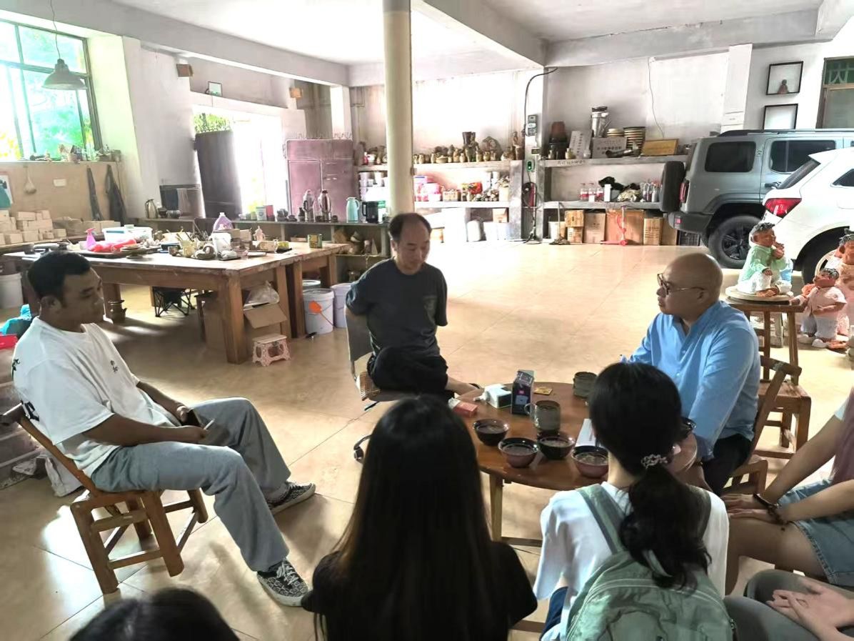2005年6月5日,湖南第一师范学院美术学系副主任李楚智带领工作室22级美术学专业6名同学,奔赴望城区铜官镇长沙泥人刘陶艺有限公司进行走访。在公司厂区和展厅与非物质文化遗产第三代“泥人刘”传人、中国工艺美术大师刘坤庭及其弟子庄函恺展开了深度交流,以青春之姿为铜官窑非遗技艺传承与创新发展注入活力,践行学校学院走访企业、聚焦就业与教育教学合作的任务。