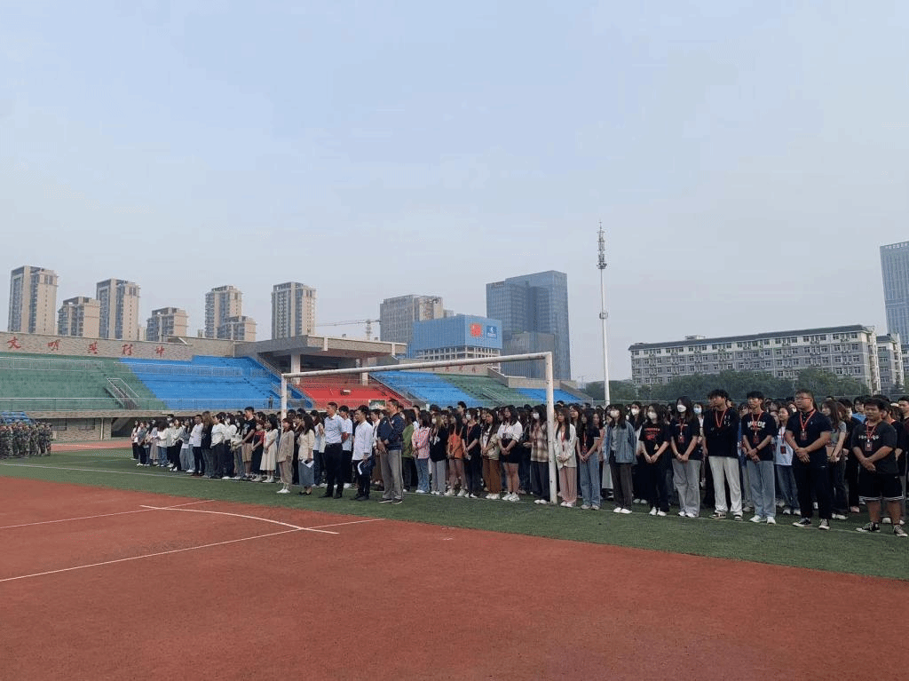 5月15日清晨,我院在东方红校区田径场隆重举行升旗仪式。学院党委书记杨虎智、副书记刘峰、全体辅导员老师、在校党员、入党积极分子以及大一至大三全体学生950余名学生参加了本次升旗仪式。仪式由学院学工办主任武湘梅老师主持。