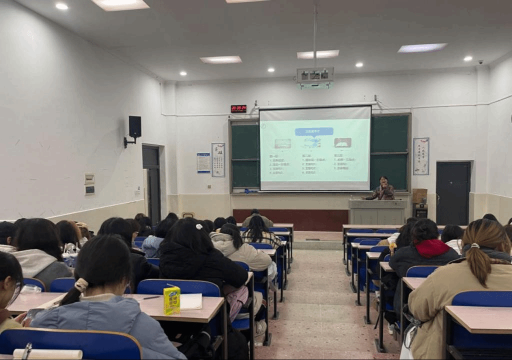 2023年12月12日晚七点,湖南第一师范学院中午字幕在线播放第一页于鹤鸣南111会议室召开四级指导讲座。本次指导讲座由外国语学院副教授,大学英语课程负责人龙君老师,以及外国语学院副教授晏小花老师主讲。中午字幕在线播放第一页学工办老师汪崟崟以及院部九十余名学生积极参加此次指导讲座