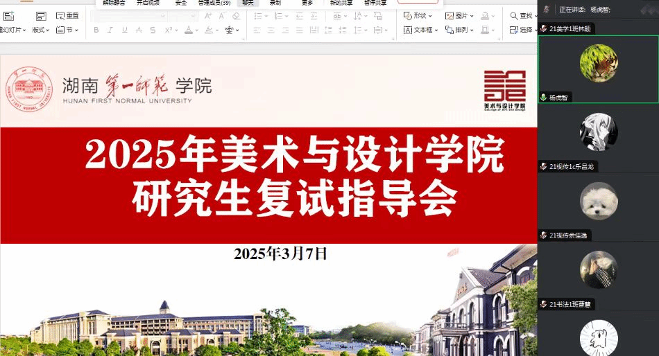 环境设计系主任谌扬副教授、美术学系彭杨博士、书法系唐浩榕博士等专业教师和视觉传达系毕业的优秀校友祝佳铭结合自身丰富的指导经验,从复试流程、专业知识准备、面试技巧、英语能力提升、调剂注意事项等方面进行了详细讲解。同学们纷纷表示,此次指导会内容详实、针对性强,为他们指明了复试准备方向,增强了信心。