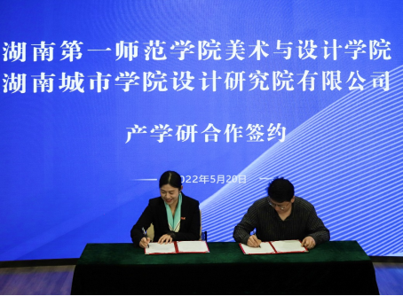院长张娴教授与湖南城市学院设计研究院有限公司总工程师喻常雄代表双方签署产学研合作协议