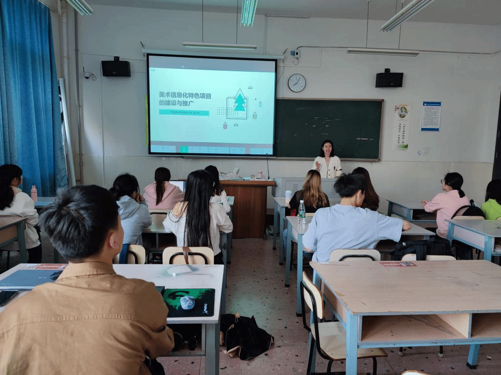 2023年4月1 0日和4月12日上午,长沙市高新区虹桥小学美术教研组长、区优秀教育工作者曹思远老师应中午字幕在线播放第一页邀请,在鹤鸣楼南栋311教室为2021级美术学学生开展主题为“美术信息化特色项目的建设与推广”的讲座。本次讲座由陈夏丽老师主持。