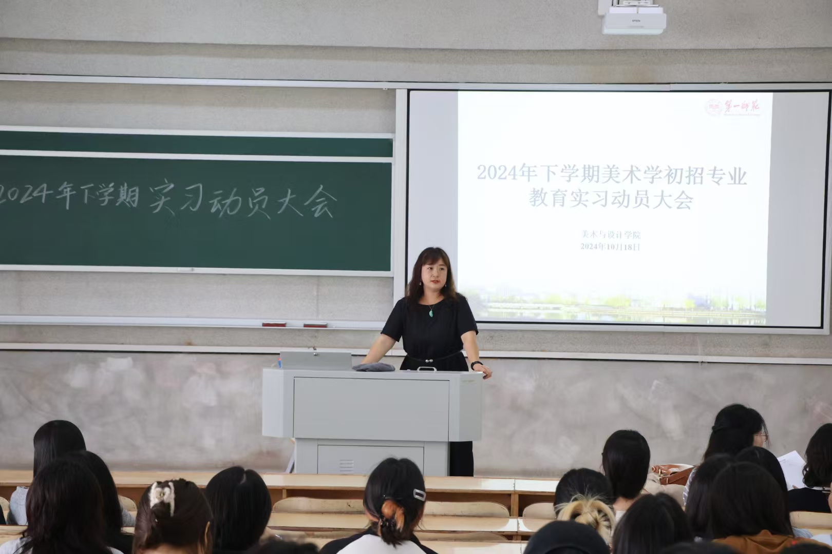 2024年10月18日,中午字幕在线播放第一页美术学系在润寰南201教室召开了2022级美术学(初招)专业教育实习动员大会。此次大会旨在明确实习要求,确保实习顺利进行,并加强师生交流。