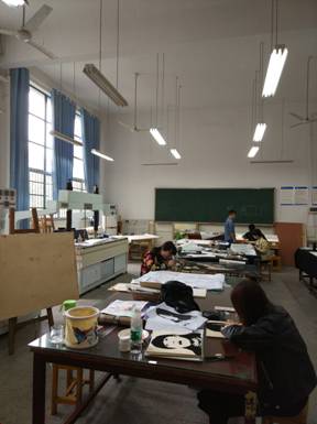 书画装裱教学实训室主要用于学生专业课的实训教学和实践活动,同时也为本院学生书画作品的装裱、校内展览、校外参展提供各种服务。除正常的教学实习安排外,其他专业学生在完成中国画选修课程后如有需要均可预约使用。