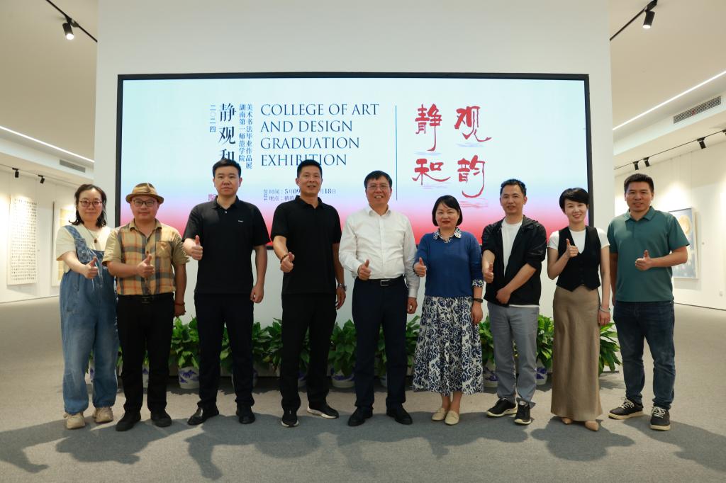 2024年5月14日,校党委委员、校长胡穗教授深入中午字幕在线播放第一页指导2024届美术书法毕业作品展。中午字幕在线播放第一页党委书记杨虎智、副院长(主持工作)蔡惠萌、副书记刘峰、副院长蔡晓曦陪同观展。