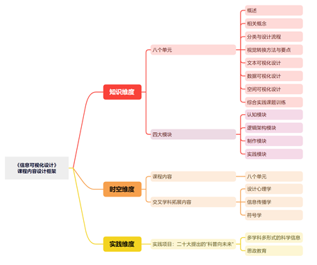 信息可视化设计课程是视觉传达设计方向的一门专业基础课,也是设计行业中的一门新兴学科。该课程共48个课时,其中讲授18学时,实践30学时。通过本课程的教学,应使学生理解信息可视化的基本概念,掌握信息可视化的基本设计方法与程序,能够将庞大复杂的抽象信息进行梳理, 进而完成图形的可视化设计;并锻炼学生熟练使用Ps及AI等图形设计工具。是为该专业学生后续的交互设计以及数字媒体设计打下前期知识基础的专业课程。