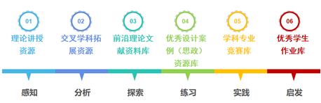 该课程构建了六大课程资源库,包括理论讲授资源、交叉学科拓展资源、前沿理论文献资料库、优秀设计案例(思政)资源库、优秀学生作业库以及学科专业竞赛库,为感知、分析、探索、练习、实践以及启发六大教学环节的设计提供有效支撑;为四大模块、三个维度的教学内容提供有利的补充。